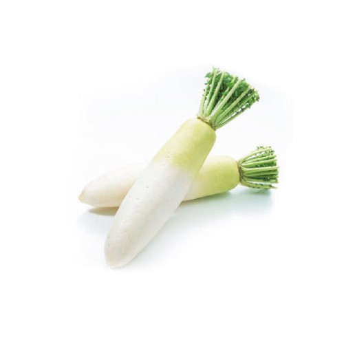 白萝卜,根茎类蔬菜,十字花科萝卜属植物。至今种植有千年历史,在饮食和中医食疗领域都有广泛应用。清乾隆庚午年(公元1750年)编修的《如皋县志》载:“萝卜,一名莱菔,有红白二种,四时皆可栽,唯末伏初为善,破甲即可供食,生沙壤者甘而脆,生瘠土者坚而辣。”其色白,属金,入肺,性甘平辛,归肺脾经,具有下气、消食、除疾润肺、解毒生津,利尿通便的功效。主治肺痿、肺热、便秘、吐血、气胀、食滞、消化不良、痰多、大小便不通畅等,白萝卜很适合用水煮熟后,喝萝卜水,放点白糖,可以当做饮料饮用,对消化和养胃有很好的作用。
